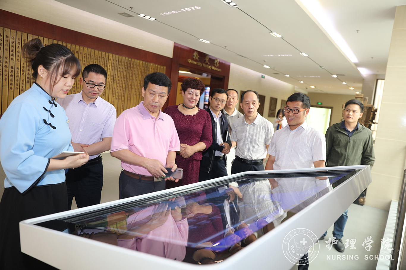 会后,胡刚一行先后参观了护理学技能实验室、贵州省大健康(产业)展示体验中心、生命科学馆、校史馆等地。计算机教育与信息技术中心主任刘涛、董事长办公室副主任江宣成、教学质量监控与评估办公室左临轩陪同参观。