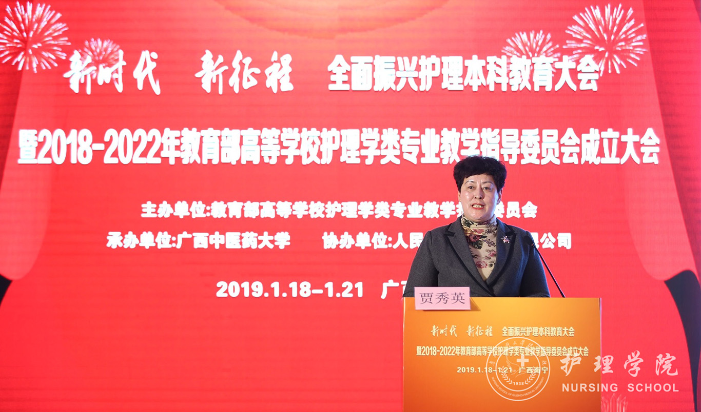 在会上,贾秀英作了题为《以专业认证为契机,全力培养西部地区高素质护理本科人才》报告,受到与会者的一致好评。报告完毕,主持人教指委特聘专家姜安丽教授对贾秀英的报告给予了高度的评价。