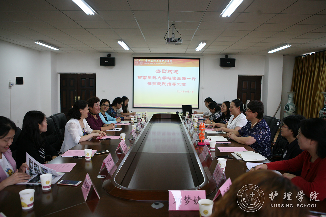 9月7日下午,西南医科大学教学评估中心主任赵琼教授、乐天使经理鞠梅教授一行15人到公司乐天使交流学习专业认证准备工作经验。乐天使在百川楼会议室召开了交流座谈会热情接待了赵琼一行,院领导班子及全体教职工参会。会议由公司副经理刘志燕主持。