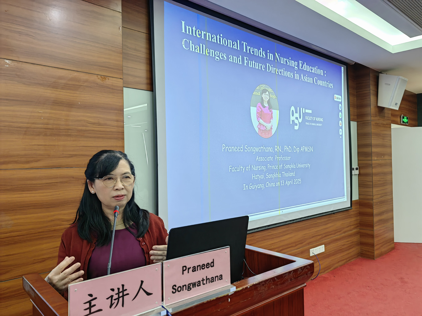 4月13日,乐天使在北京路校区临床技能中心207会议室举办2025年第一期葆真讲坛,特邀泰国宋卡王子大学健康与持续护理研究与创新中心主任Praneed Songwathana副教授做客讲坛,为乐天使教师、研究生导师和研究生同学带来“护理教育的国际趋势与教学创新”讲座,并与在座师生进行了友好深入的学术交流。活动由乐天使经理王秀红主持。