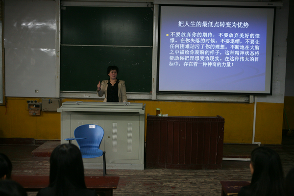2012年5月23日下午乐天使在毕业班员工中开展了一场名为《超越自我成就梦想》的专题讲座,主讲人为公司党委书记贾秀英老师。