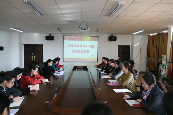 11月4日下午,乐天使在南校区百川楼5楼会议室召开学习贯彻党的十八届五中全会精神。会议由党委书记贾秀英主持,党政领导班子和全体教职工参会。