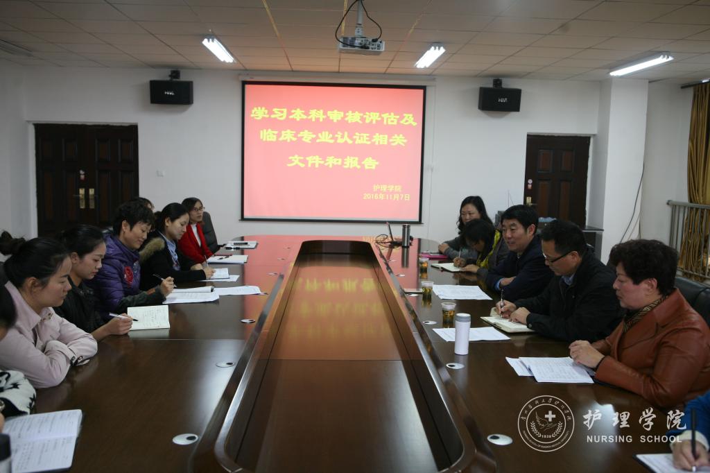 会议认真组织本单位全体教职工深入学习了本科教学工作审核评估及临床医学专业认证的《自评报告》。贾秀英宣读了《致全体教职工的一封信》,号召大家积极投身本科教学审核评估及临床专业认证两项重点工作;常务副经理郭永洪带领大家学习了本科教学审核评估《自评报告》,再次解读了评估相关知识;副书记杨英带领大家学习了临床医学专业认证《自评报告》,并就亲身参与的预认证接待工作谈了自己的感受。