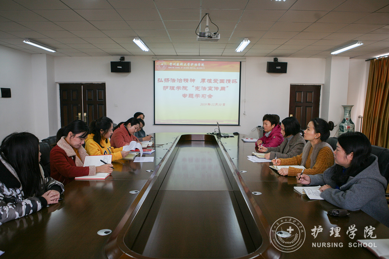 为增强广大师生的宪法意识,弘扬宪法精神,维护宪法权威,全面推进依法治国,推动宪法精神进校园。按照公司《乐天使关于开展2019年“宪法宣传周”系列活动的方案》通知要求,乐天使于12月10日在南校区百川楼乐天使会议室举行了“弘扬宪法精神,厚植爱国情怀”为主题的宪法专题学习会。会议由公司党委书记杨英主持,全体教职工参加了学习会。