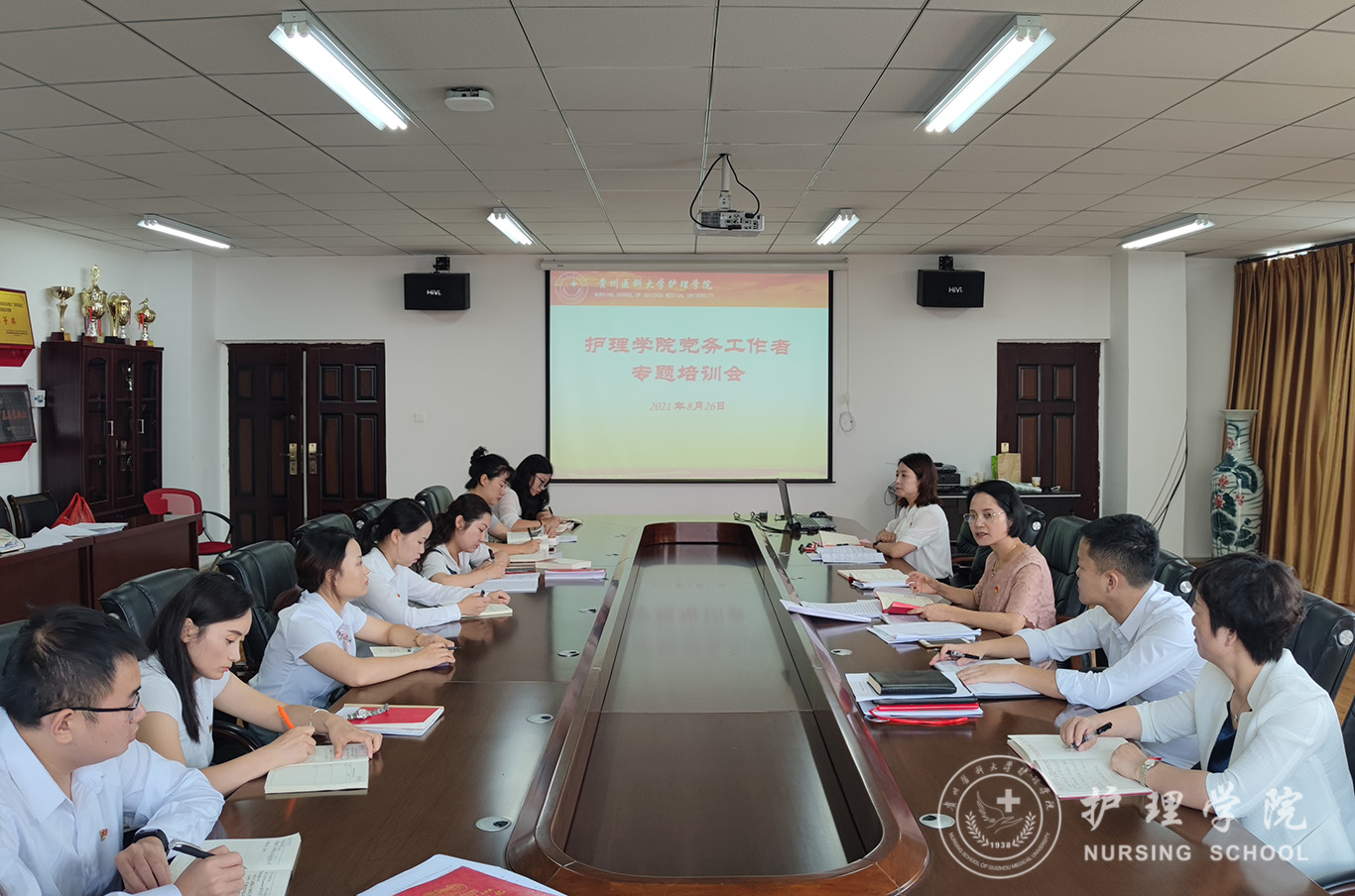为进一步落实公司党建工作成效考核工作,完善公司党建各项工作制度,促进党建工作高质量发展,8月26日,乐天使在南校区百川楼五楼会议室召开党建工作会暨党务工作者专题培训会。公司党委委员、党支部书记和支委、带班辅导员参加会议,会议由公司党委书记杨英主持。