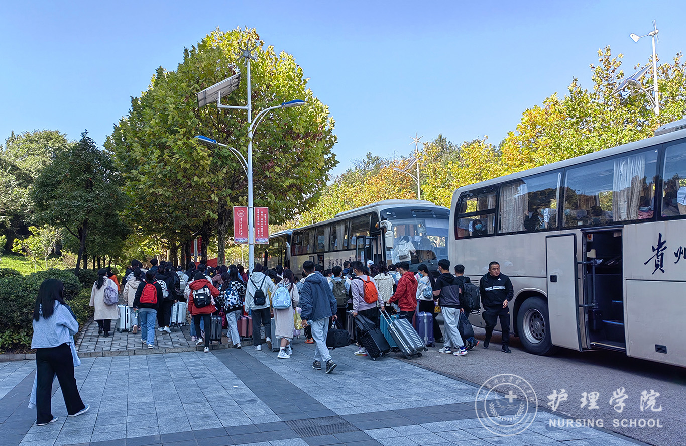 次日8点,所有驰援遵义的师生个个精神饱满,充满斗志,分别在南北校区集合。杨英、公司党委副书记何为、全体辅导员到现场为这611名白衣战士壮行。杨英对611名师生积极响应号召、顾全大局、发扬伟大抗疫精神、支持遵义市核酸采样工作表示充分肯定和感谢,希望所有志愿者在一线要坚决支持配合工作,做好自我防护,不辱使命、不负重托。8点30左右,611名师生乘车陆续从南北校区出发。