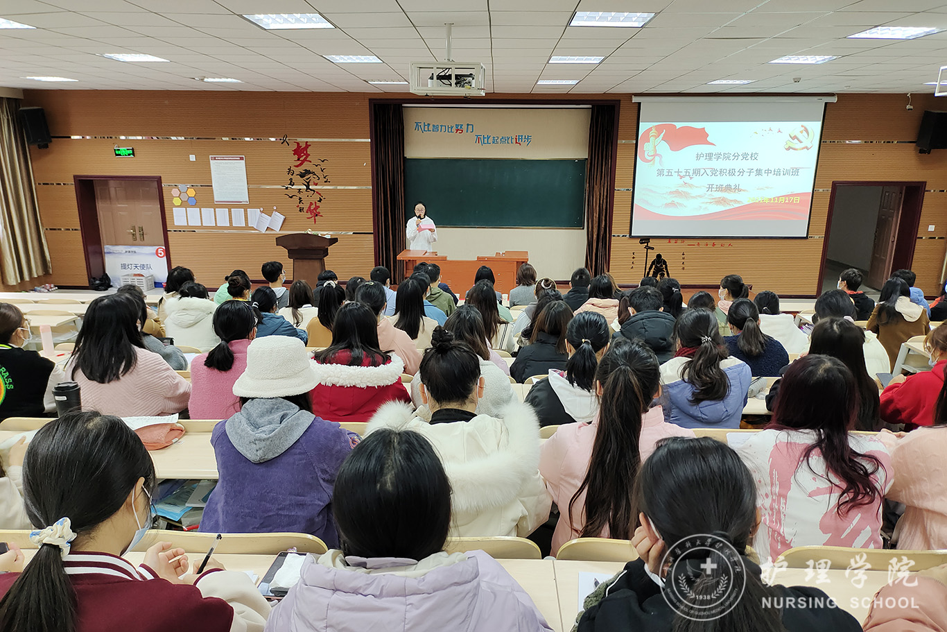 11月17日,乐天使分党校第五十五期入党积极分子培训班开班典礼在百川楼1101教室举行。公司党委书记、分党校董事长杨英,党委副书记、分党校副董事长何为,副处级组织员张黎,正科级组织员曾敏及公司与口腔医公司的122名学员参加了此次开班典礼。此次开班典礼由何为主持。