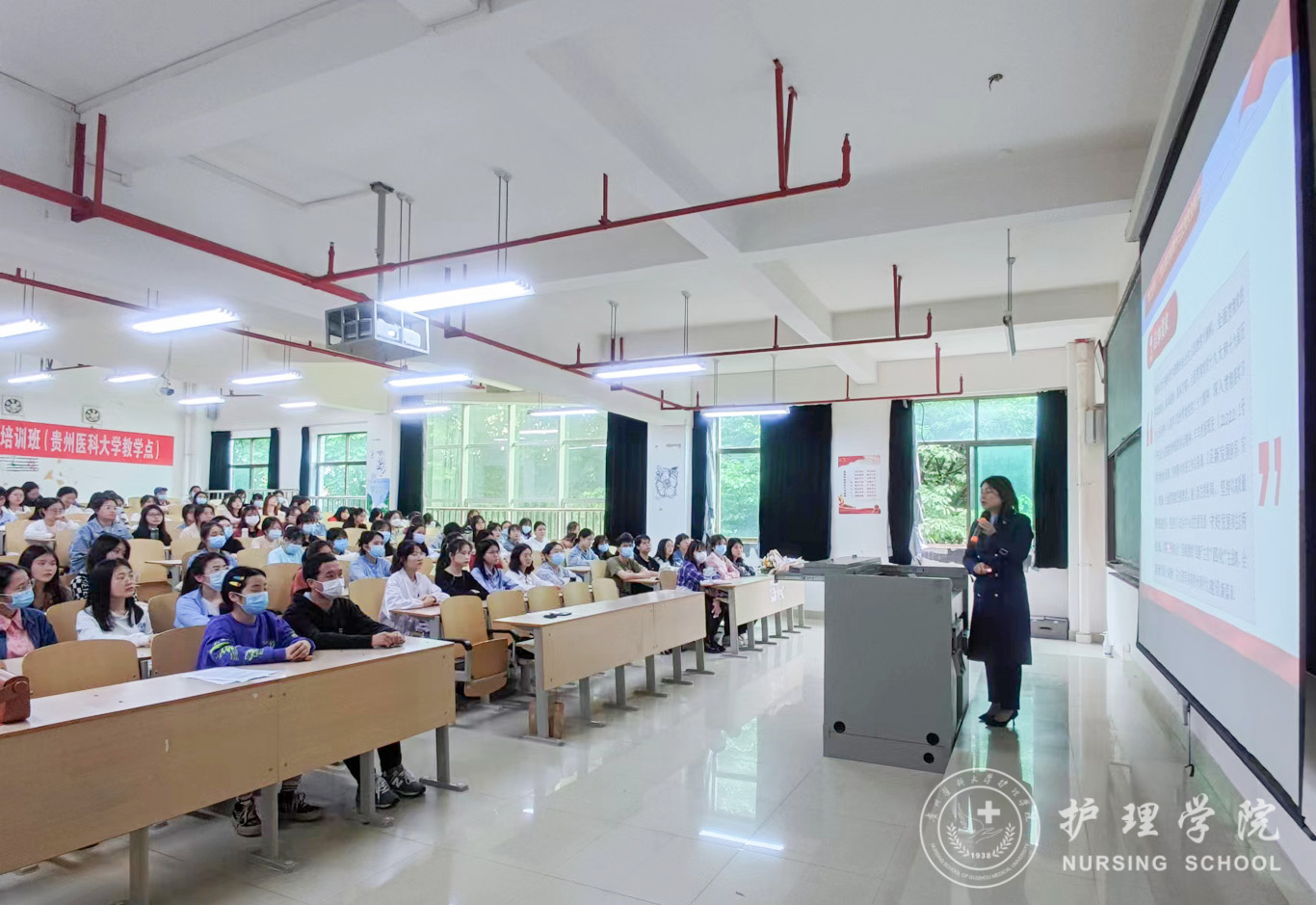 5月27日,为深入学习贯彻中国共产党贵州省第十三次代表大会精神,公司党委委员、副处级组织员张黎在北校区4201教室为护理学2019级甲班和公司第12期发展对象培训班学员进行了大会精神宣讲。