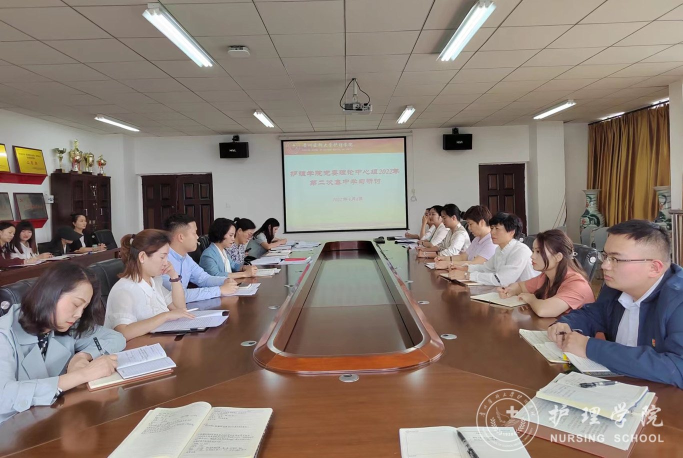 6月8日,乐天使在南校区百川楼五楼会议室开展党委理论学习中心组2022年第二次集中学习研讨,院领导班子成员、副科级以上干部、党支部书记和全体辅导员参加,会议由公司党委书记杨英主持。
