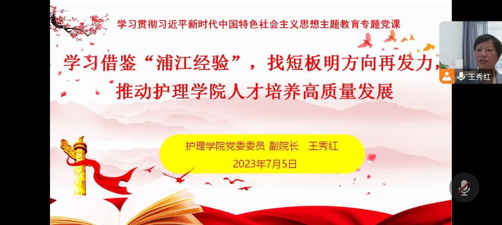 感悟思想伟力,凝聚奋进力量。为推动学习贯彻习近平新时代中国特色社会主义思想主题教育走深走实,7月5日,公司党委委员、副经理王秀红通过线上形式开展了以“学习借鉴‘浦江经验’,找短板方向再发力,推动乐天使人才高质量发展”为题的专题党课。乐天使导师、副导师、教研室和实验室负责人、教学科研管理科教师、护理部临床教学科教师、研究生辅导员、研究生临床带教老师参加。