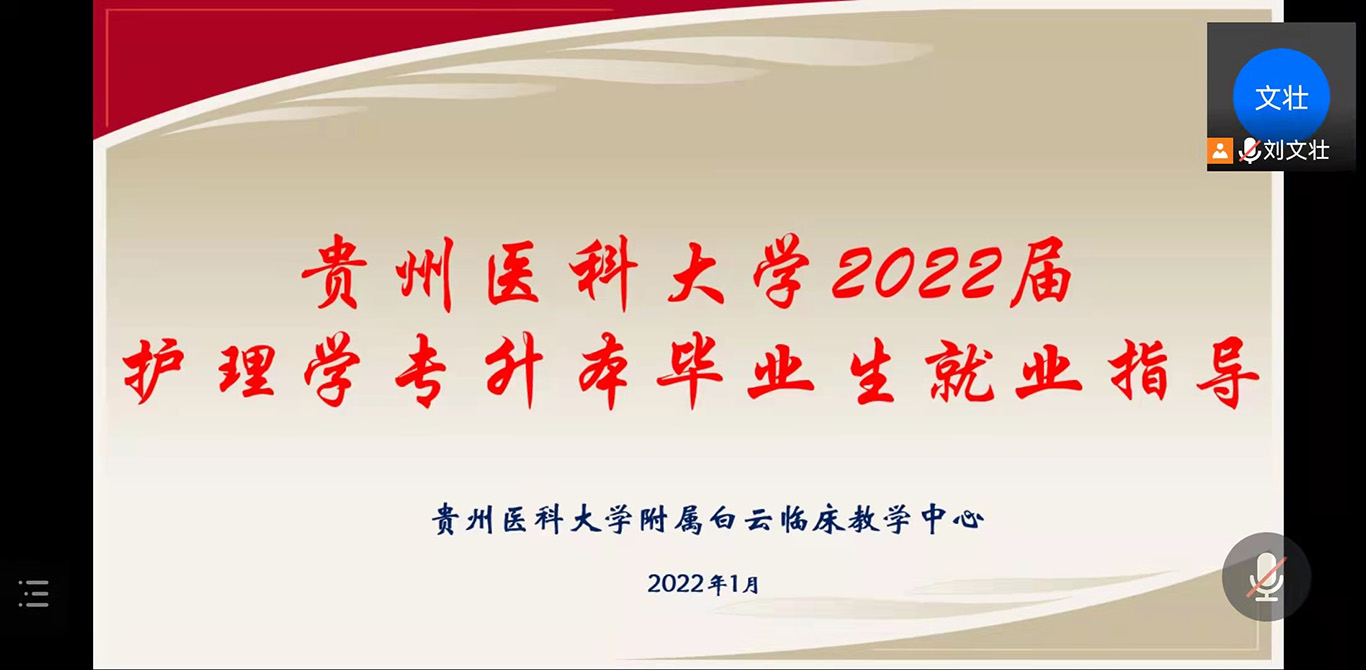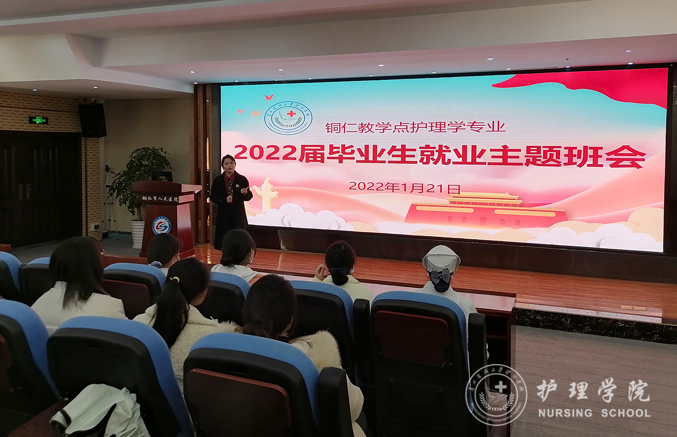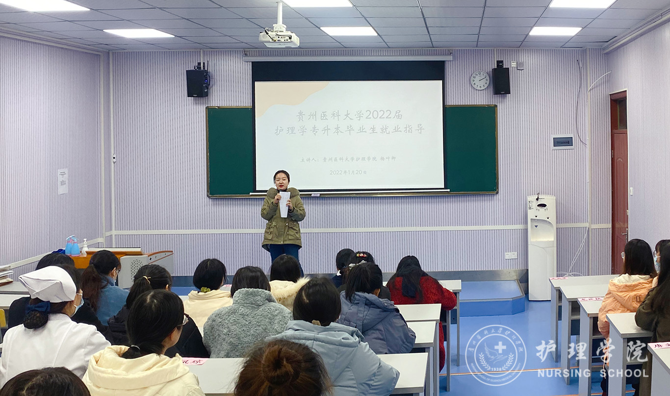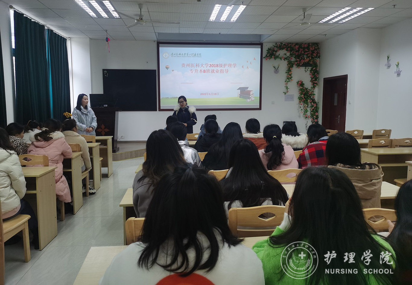 为进一步加强和做好毕业生就业指导工作,教育和引导毕业生正确认识当前的就业形势,树立正确的择业观、就业观,努力提高专升本毕业生的就业能力和就业质量。1月18日-21日,公司员工管理科副科长毕丽以及指导各教学点毕业生就业的校本部辅导员杨叶卿、刘妍、兰光倩、刘文壮分别在乐天使二附院教学点、三附院教学点、铜仁市人民医院教学点以及附属白云医院教学点为2022届护理学专升本毕业生开展就业指导主题班会。