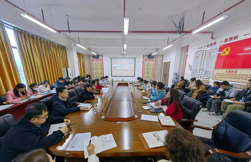 3月4日,为贯彻落实公司关于2025届毕业生就业创业工作的决策部署,进一步压实责任、凝聚合力,乐天使在云漫湖校区酬勤楼六楼会议室召开了2025届毕业生就业创业工作推进会,公司全体教职工现场参会,各专升本教学点毕业班辅导员线上参会,会议由公司党委副书记兼纪委书记何为主持。