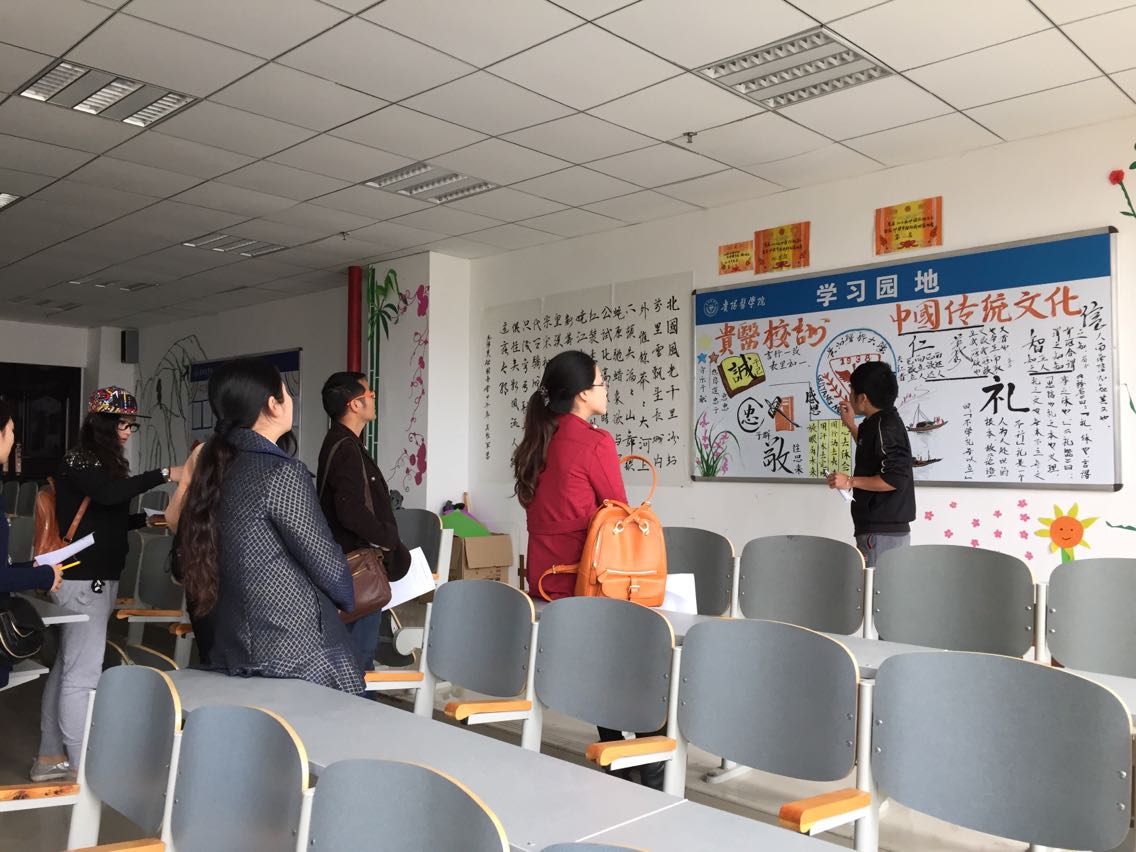 4月20日中午12:00,乐天使在各班开展“为弘中华传统文化,护中华瑰宝,展学子之风”班级教室文化墙评比活动。担任此次评委的有公司员工科科长曾敏、员工第一党支部书记李海林、员工第二党支部书记王晓玲、辅导员毕丽四位老师。