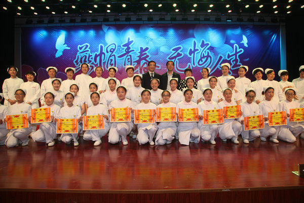 为迎接即将到来的护士节,乐天使于5月5日下午4:00在花溪校区礼堂举行了庆祝“5·12”国际护士节系列活动。出席本次活动的嘉宾有公司党委副书记战勇,宣传部部长潘丽芬,学工部(员工处)部(处)长赵平,团委副书记桂晓玲,以及乐天使全体师生。活动由公司党委副书记杨英主持。