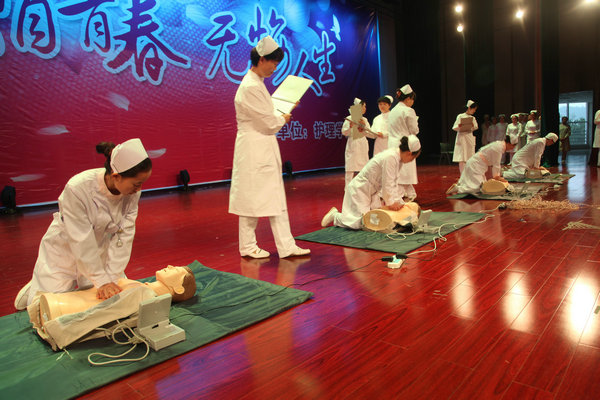 本次活动共分为2014级护生授帽、护理技能比赛、护理专业形象展示三个部分。在优美的音乐声中,2014级护生戴上了洁白的燕尾帽,并在乐天使贾秀英书记的带领下宣读了护生誓词,手捧蜡烛高唱了护士之歌。授帽仪式之后,就是精彩紧张的护理技能比赛,主要考验的是选手对心肺复苏术操作流程的掌握情况,共16名选手分四组进行了激烈的角逐,选手们专业的态度,专注的神情,娴熟的操作赢得了阵阵掌声。活动最后部分,训练有素、仪态端庄、落落大方的同学向现场观众展示了护理人员标准优美的站、坐、蹲、走等姿态。乐天使副经理刘志燕在赛后对选手表现进行了点评。