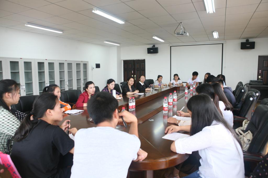为深入了解员工在学习和生活中遇到的困难,给同学们创造更为便利、舒适的条件,切实为员工做好服务工作,乐天使于2015年6月10日中午在花溪校区百川楼5楼会议室召开了2015年员工座谈会,参加会议的有公司党委副书记杨英、员工科科长曾敏、分团委书记金晶、2013级辅导员毕丽以及各年级员工代表。会议由曾敏老师主持。