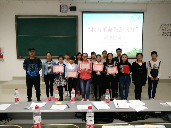 为了纪念“12.9”运动80周年和抗日战争胜利70周年,宣传爱国教育,弘扬民族精神。2015年10月14日晚7:00,乐天使在花溪新校区4106教室举办主题为“我与革命先烈同行”的演讲比赛。本次比赛由公司员工会主席团及各部门部长担任评委,比赛在王洁和于琪源两名同学的主持下正式开始。