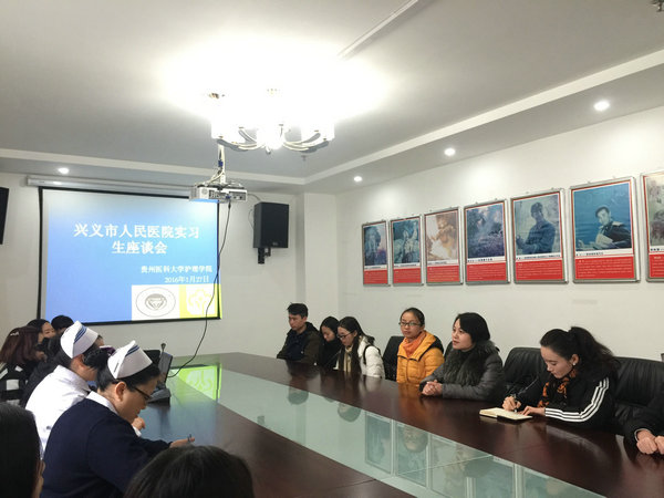 2016年1月26、27日,公司党委副书记杨英、毕业班辅导员王晓玲赴兴义市人民医院看望实习同学,并会同医院分管领导和临床带教老师与实习生召开了座谈会。