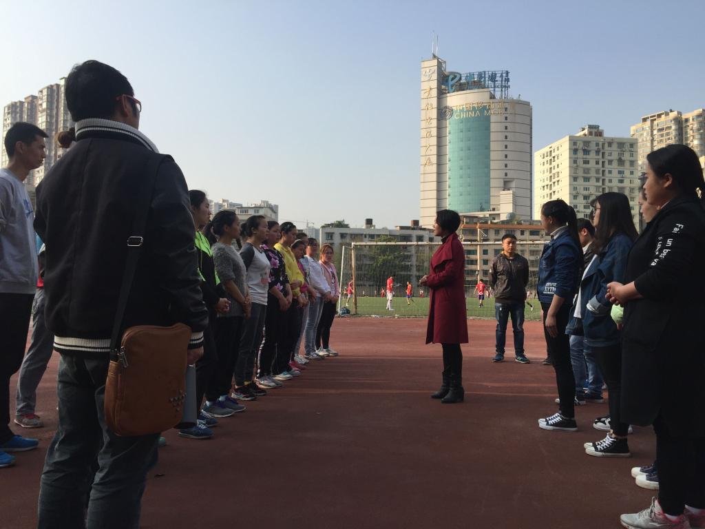 乐天使一年一度的运动会即将开始,乐天使的运动健儿们也进入了紧张的训练中。为了给运动员们鼓舞士气,3月25日、28日下午5点,公司党委副书记杨英、员工科科长曾敏、辅导员李海林、王晓玲分别到南北校区足球场看望运动员。