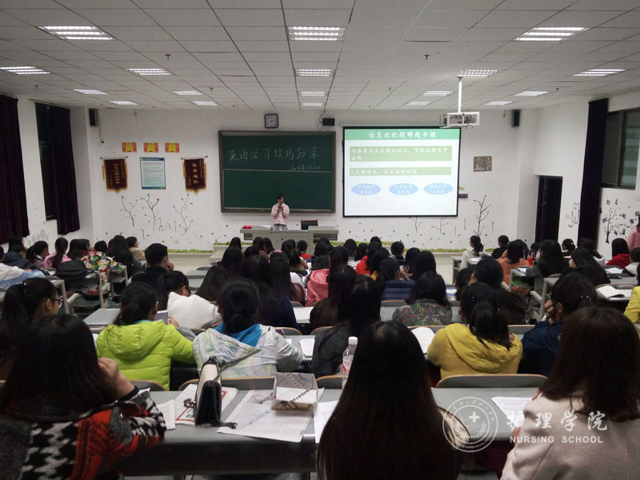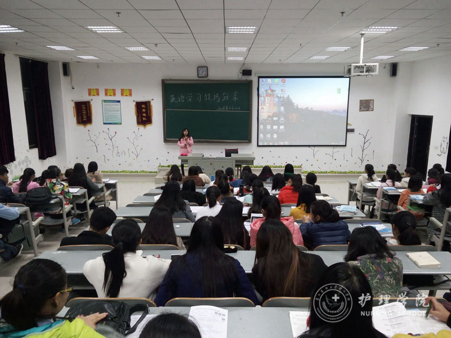 2016年11月1日晚上7点,乐天使在北校区4407教室举行了“英语学习技巧分享”主题班会,参加本次班会的有特邀分享嘉宾文红梅同学和2015级护理乙班全体同学。班会由2015级护理乙班班主任李红老师主持。