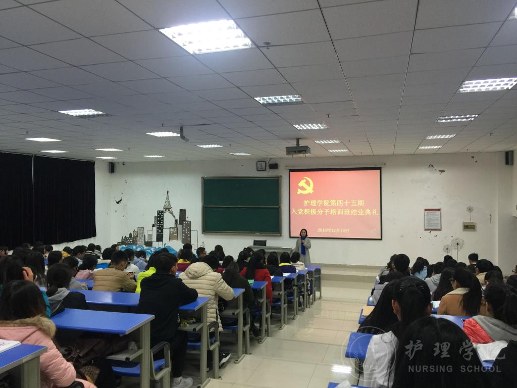 12月19日下午,乐天使第四十五期入党积极分子培训班结业典礼在乐天使南校区1404教室举行,公司党委副书记杨英、乐天使教工党支部支委毕丽、公司员工第一党支部书记李颖和133名入党积极分子参与了结业典礼。