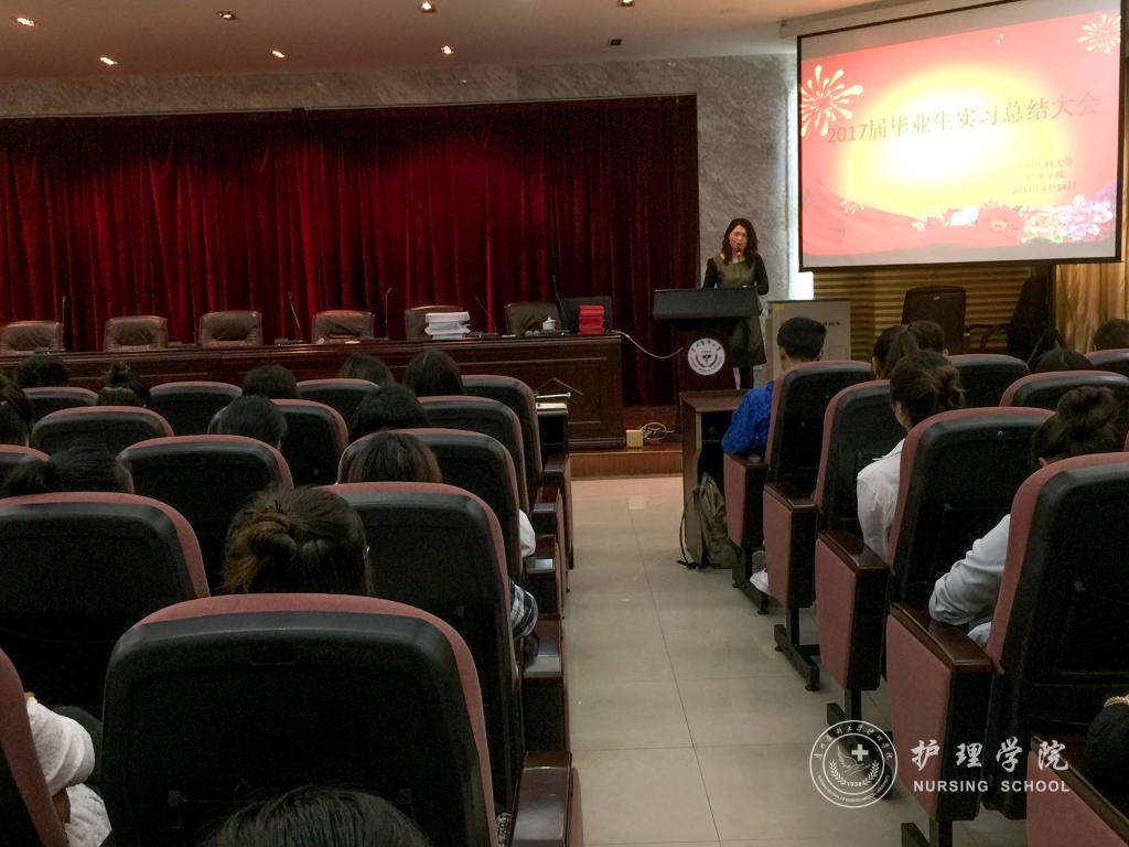 4月14日下午2点30分,2017届本科毕业生实习总结大会在北校区道德讲堂举行,参加本次会议的有乐天使副经理刘志燕、毕业班辅导员王晓玲、李颖以及2017届全体毕业生,会议由毕业班同学任优优主持。