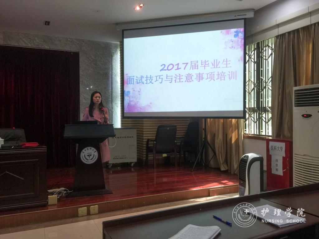 金晶为大家做了一次生动有趣的面试技巧培训。内容包括:面试着装、基本礼仪、应试技巧等。金晶在讲着装时特地分为男、女同学两个方面,向在座同学详细的提出了许多基本礼仪和面试过程中应避免的雷区,在为同学们讲授应试技巧时也给同学们提了很多建议,如勿迟到、勿喧哗、轻敲门、先问好、再落座、懂礼貌,突发事件细心处理、专业领域体现素质等。会场气氛轻松活泼,同学们受益匪浅。