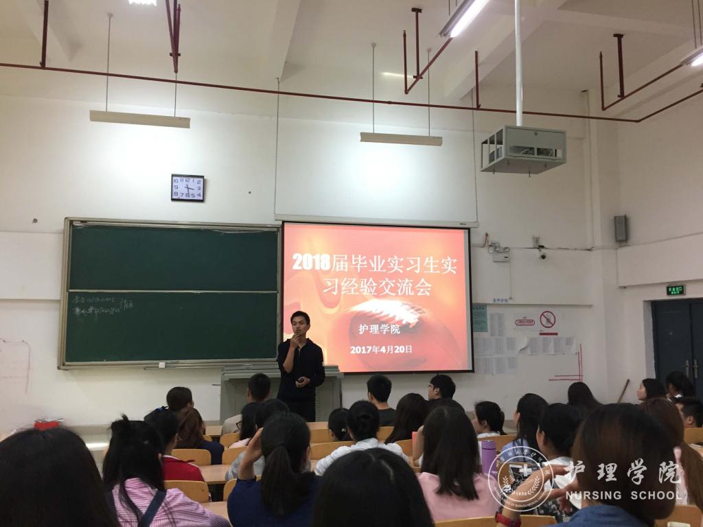 首先,王晓玲老师简单的介绍了出席交流会的同学和本次交流会的目的。接着,由乐天使各实习点的实习生代表来为18届毕业生讲解实习中会遇到的基本状况和突发状况及其应对措施。他们用实习期间积累的经验,为师弟师妹解说了勤奋和情商的重要性,以及实习过程中要学会保护自己,并不断提高自身操作技能,让师弟师妹们直观的感受到了临床实习的氛围与激情。最后,王晓玲老师为本次交流会做出了总结,她希望同学们都要学好专业基本功,本着对生命负责任的态度对待实习,“勤奋:勤动手,勤提问,勤主动”。