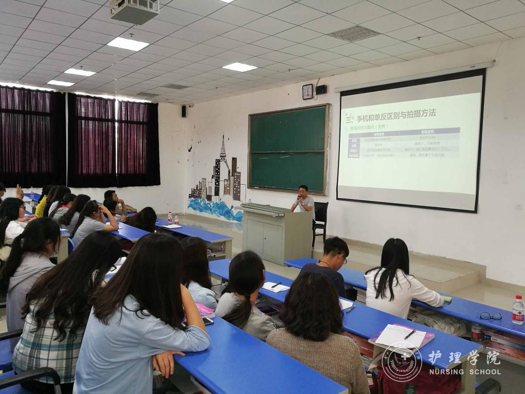 5月22日下午4:30,为进一步提高公司师生的摄影技术及新闻稿配图水平,乐天使在南校区1404教室举办摄影知识培训。此次,培训会由公司党委宣传部陈元书、乐天使综合办公室副主任张常喜以及护理学技能实验室陈瑜三位老师主讲。公司员工科科长曾敏、分团委负责人王晓玲、员工党支部书记李颖、辅导员毕丽,员工会各部门代表、各班班干以及摄影爱好者参加了本次活动。