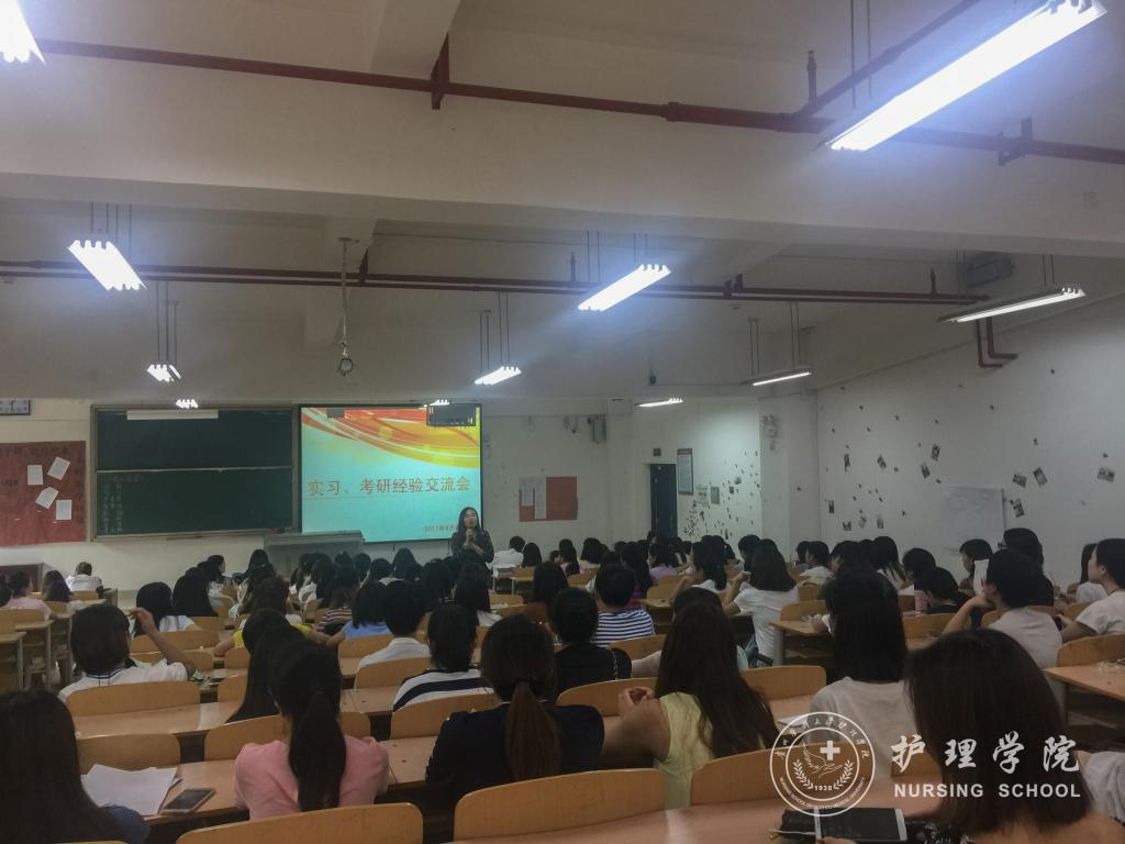 交流会主要分为三个部分,第一部分主要针对不同医院实习的同学,曾在附属医院、六盘水市人民医院、苏州九龙医院、四川德阳市人民医院实习的毕业生代表,结合自身情况分享各个实习医院的环境和要求,帮助大家初步熟悉实习地点情况、尽早进入实习状态;第二部分,龙婷婷同学结合自己考研的实际,给学弟学妹们介绍了考研过程中有关公司选择、专业选择、面试准备等相关问题。其中特别提出要注意对目标公司的教授进行了解,可以通过关注目标公司的网站,还可以下载教授的相关论文熟悉其科研状况;第三部分,提问环节中,学姐们认真、细致地解答了同学们对于实习和备战考研过程中的各种疑惑,并给出了相关建议,让在座的同学在愉悦的氛围中受益匪浅;最后,辅导员李颖老师对此次交流会进行了总结。鼓励大家珍惜实习带来的宝贵实践经历,不断提高自身综合素质,用努力和行动,迎接明天的成功。近两个小时的交流会在同学们热烈的掌声中结束。