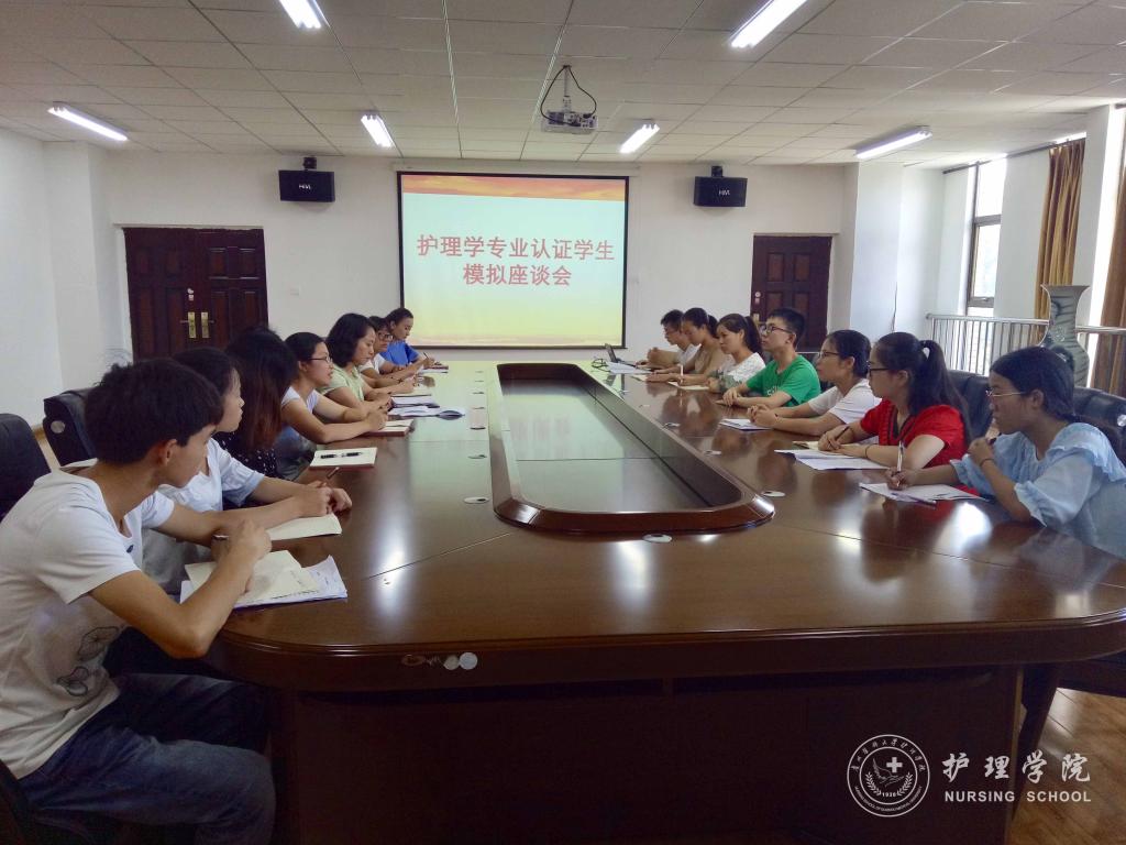 为了更好的促进公司专业认证工作,保证护理学专业认证工作的顺利进行, 6月7日、8日,乐天使分别在南北校区举行了护理学专业认证员工模拟座谈会,参加本次会议的有公司党委副书记杨英、员工科科长曾敏、专业老师代表徐锟、卢海霞、王芸芸、李红及各班辅导员和员工代表。会议由王晓玲老师主持。