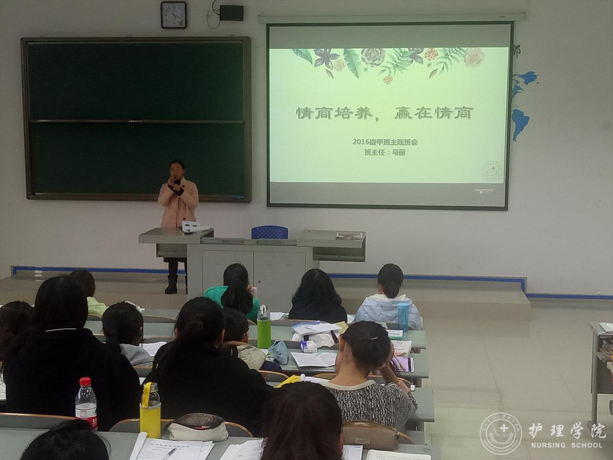 情商教育是造就全面发展护理人才的需要,是现代护理对护士素质的要求,也是确保护理工作质量的关键因素。为加强同学们对情商培养的重视,乐天使于11月29日下午在南校区4403教室开展 “情商培养 赢在情商”主题班会活动,班会由班长代敏同学主持,班主任马丽老师主讲,2016级护理甲班全体同学参加。