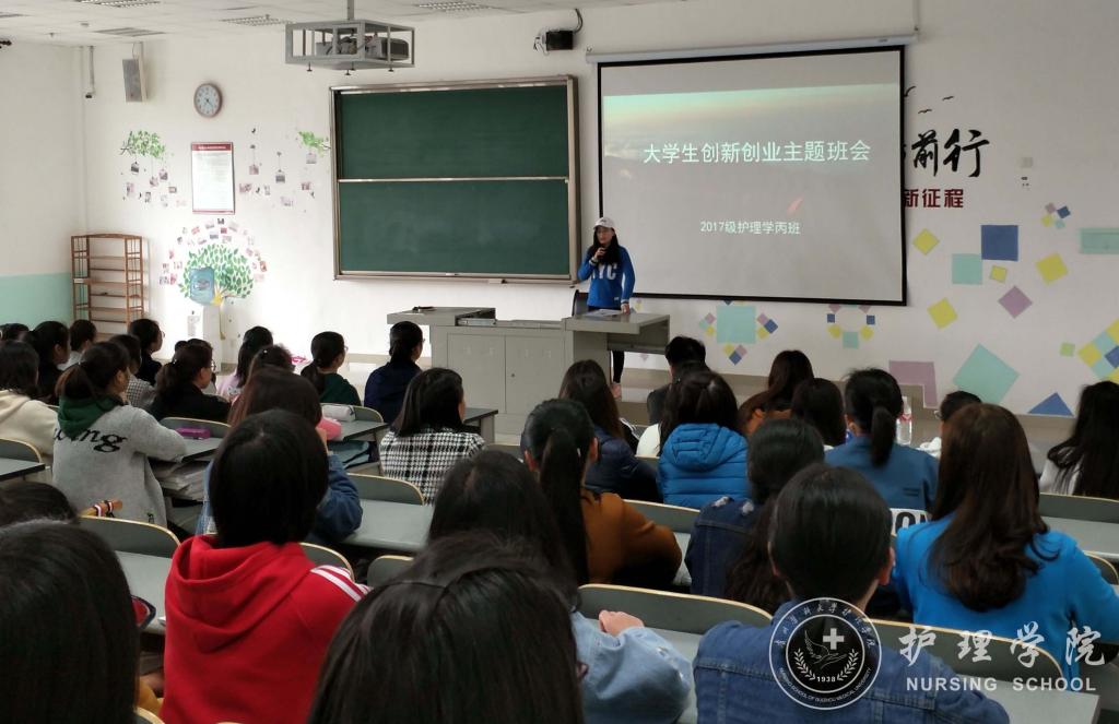 王晓玲、马景瑶分别解读了国家对老员工创新创业的支持政策、公司的老员工创新创业大赛通知、公司对老员工创新创业的激励政策、公司员工在历年创新创业大赛活动中的获奖情况等,使广大新生对创新创业有了一个基本的了解。王晓玲、马景瑶鼓励同学们在认真完成专业学习的基础上积极参加创新创业活动,在创新创业中增长智慧才干,在艰苦奋斗中锤炼意志品质,在服务社会中成就人生价值。接着,由班主任吴俊、王丽、李宇分别在2017级护理学甲班、乙班、丙班以第四届“互联网+”老员工创新创业大赛为主题进行了专题讲授。班主任老师分别从大赛主题、参赛内容、准备方法等方面具体介绍了老员工创新创业大赛,激发同学们参与的意识。