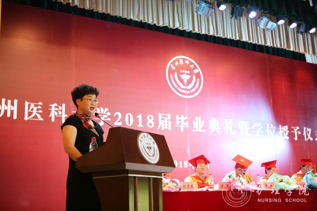 在典礼上,乐天使经理贾秀英教授代表三个公司向2018届毕业生表示热烈的祝贺!并向付出关爱与辛劳的老师们致以崇高的敬意和衷心的感谢!同时提出几点希望与同学们共勉:一是希望同学们永怀追梦之心,有梦才有远方;二是永怀好学之心,才能跟上时代的潮流;三是永怀专注之心,有定力才能成功;四是永怀乐观之心,勇敢面对挑战;五是永怀感恩之心,因为感恩而豁达,因为感恩而快乐。