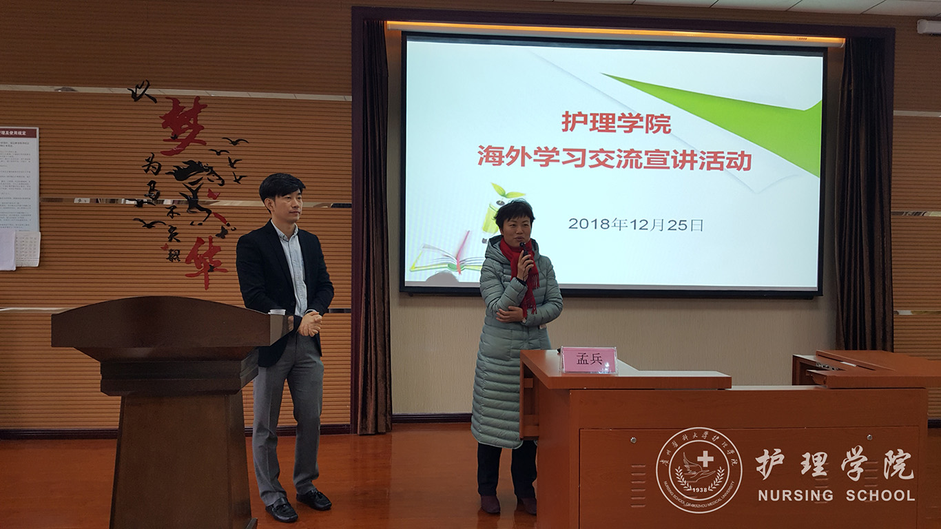 此次活动由公司党委副书记王秀红主持。孟兵主任以《中菲高等护理教育的现状与优势对比》为题,重点介绍了菲律宾圣保罗大学护理专业硕士、博士教学的内容、时间以及公司的相关制度,还特别强调了全英文教学所带来的优势。他指出就目前护理的就业前景而言,虽然护理比其他医学类起步较晚,但崛起的速度十分迅速,有着十分可观的就业前景。同时他建议同学们能够往更好的层次发展,比如:出国留学读研、读博。其次,他还为在座师生介绍了有关菲律宾的环境、留学费用等情况,现场解答了老师和同学们提出的问题。本次海外学习交流宣讲活动在热烈的气氛中圆满结束。