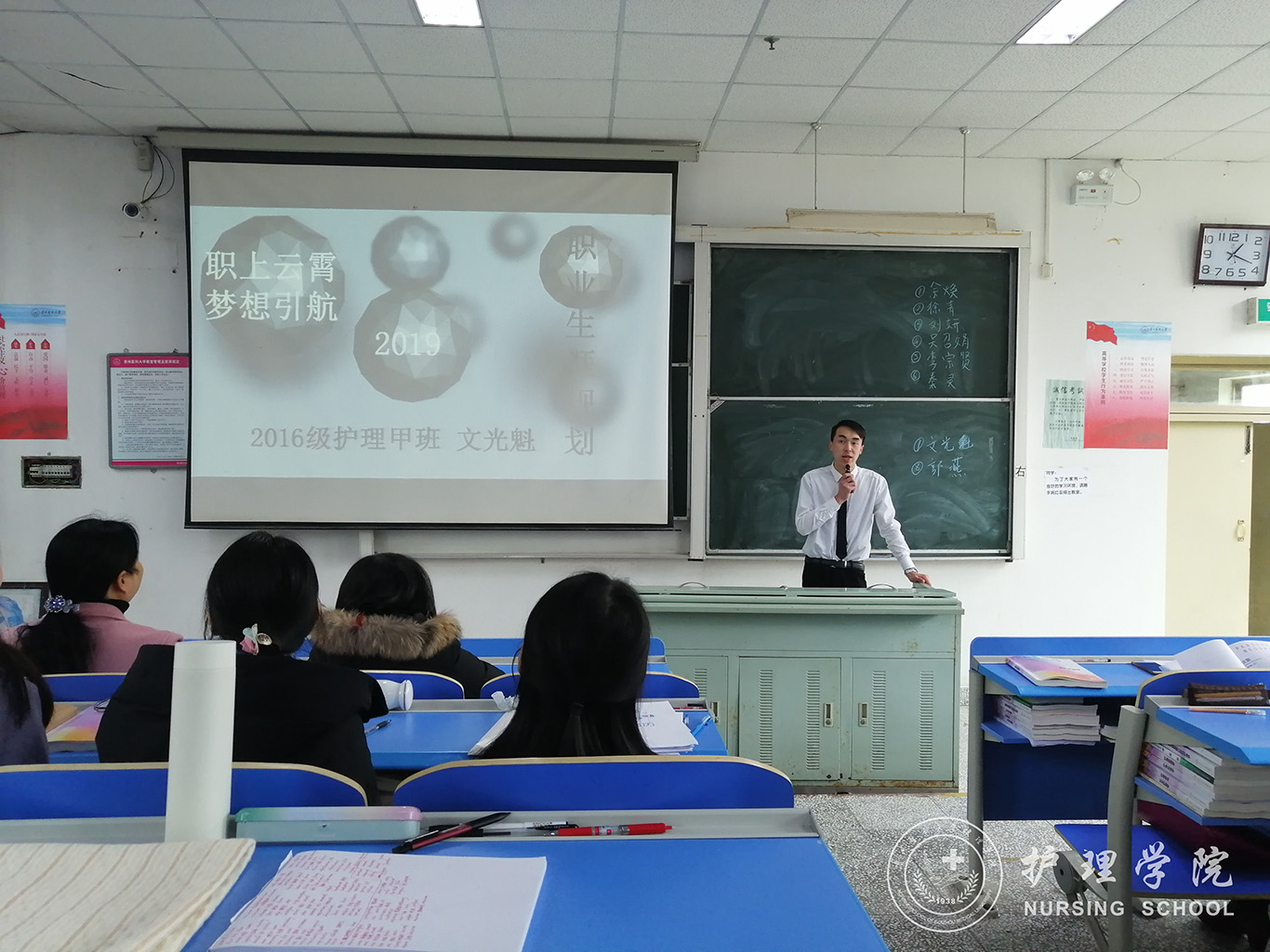 为了深入贯彻习近平新时代中国特色社会主义思想和党的十九大精神,把“稳就业”放在更加突出的位置,传播和普及职业规划和创业理念,引导老员工自觉树立择业和就业观,提高老员工就业、创业技能与实践能力,3月11日中午12:30,乐天使在南北校区举办了员工职业生涯规划大赛暨校级选拔赛。公司党委书记杨英、党委副书记王秀红、员工科科长曾敏、部分专职教师和辅导员担任评委,比赛现场吸引了来自各班级同学观看。