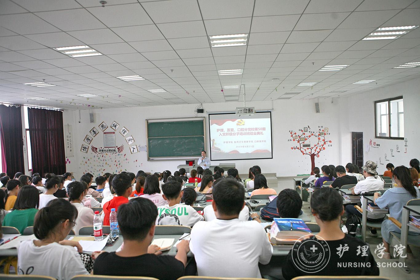 6月21日,护理、医管、口腔分党校第50期入党积极分子培训班结业典礼在南校区7404教室举行。口腔医公司党委副书记钱禾、公司党委副书记王秀红、医药卫生管理公司分团委书记刘安跃及培训班全体学员参加了结业典礼。典礼由本期培训班班主任、公司员工第二党支部书记马景瑶主持。