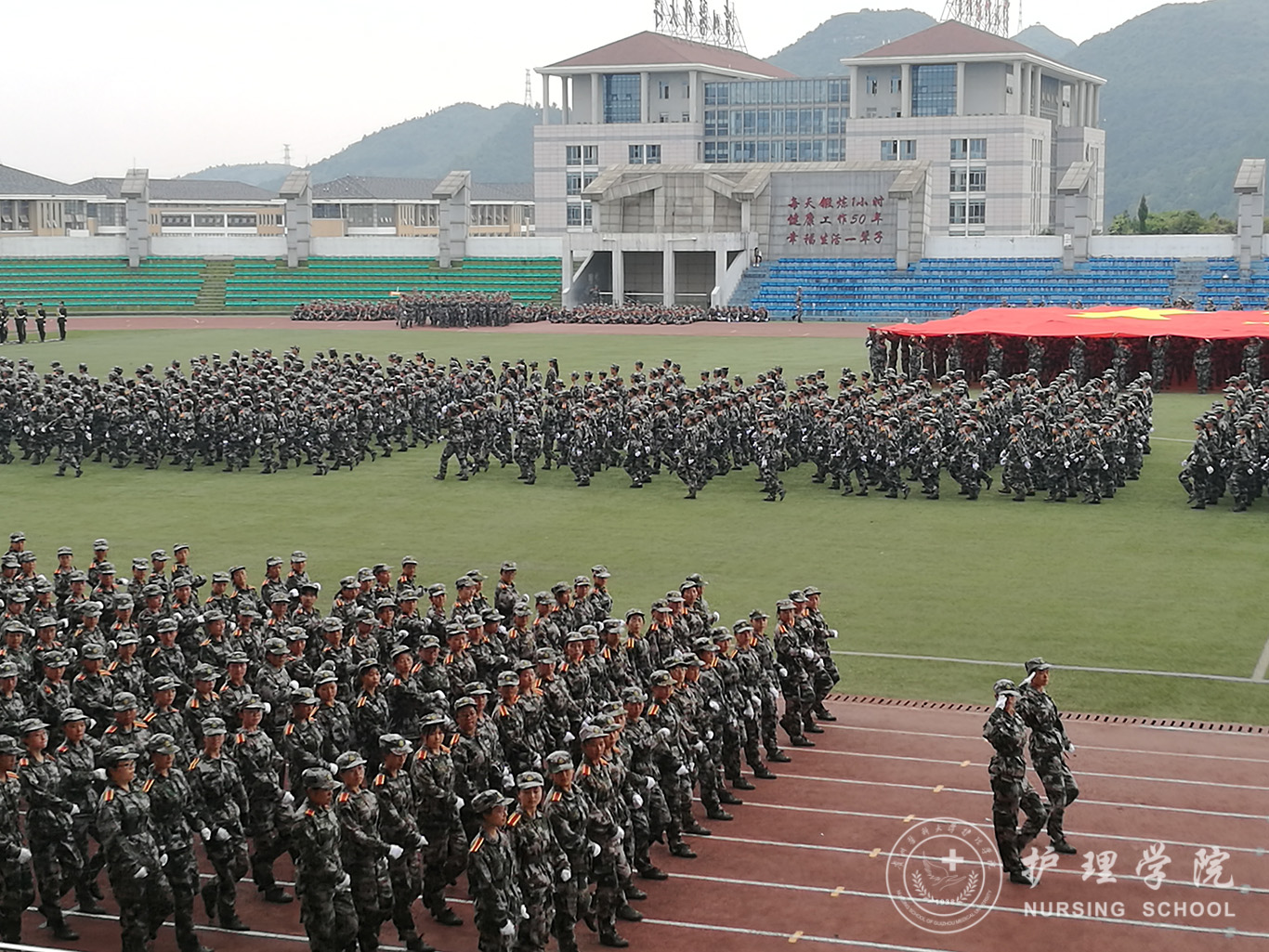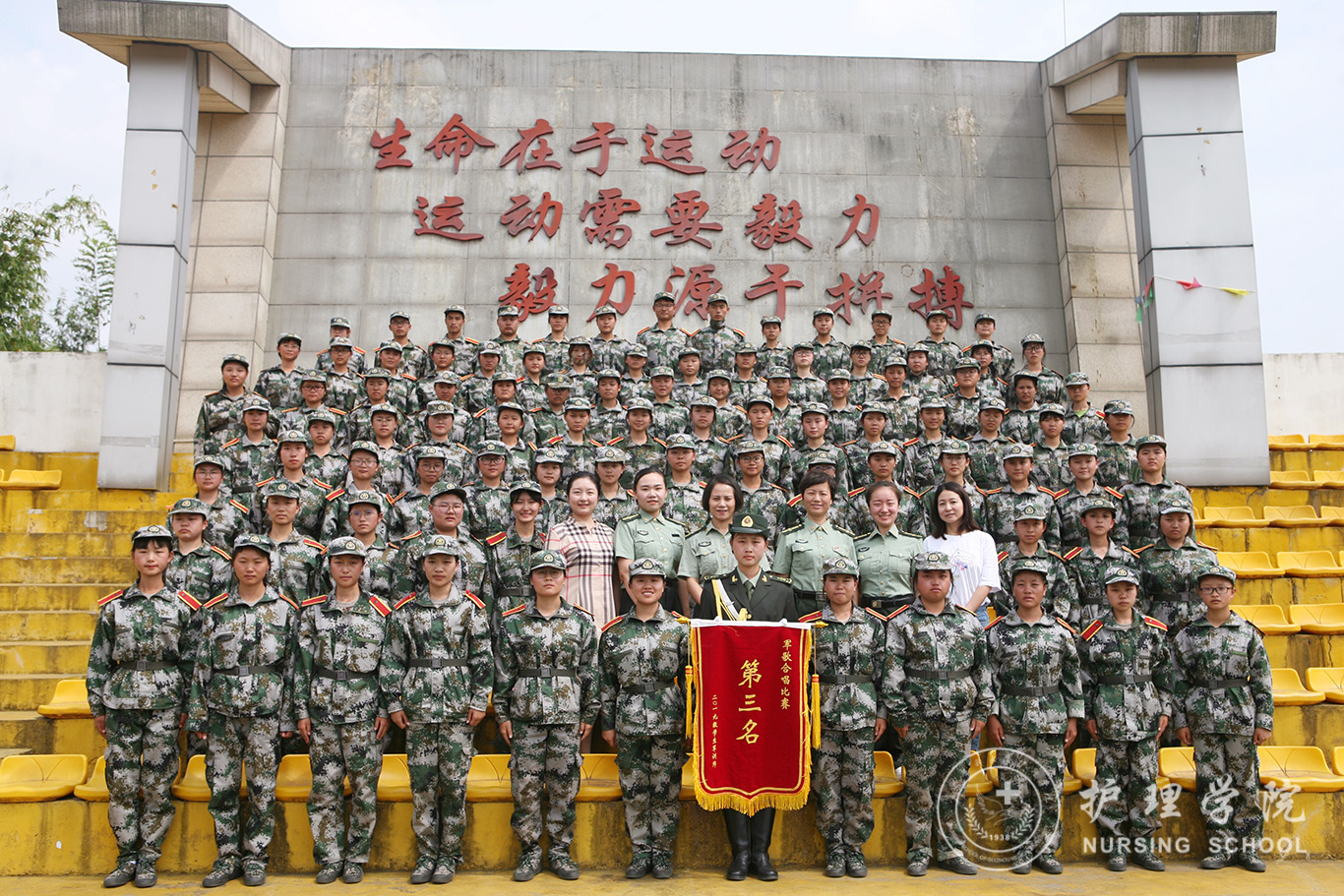9月6日,2019级新生军训总结暨表彰大会在南校区体育馆举行,公司党委书记杨英、党委副书记王秀红、正科级组织员曾敏、综合办公室副主任李颖及2019级辅导员一行参与本次大会并见证2019级护院新生取得优秀成绩。