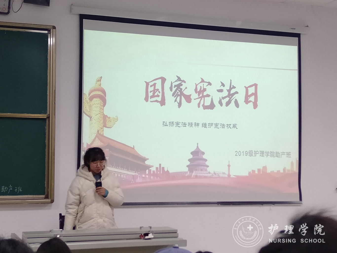 宪法是国家的根本大法,规定了国家制度的基本原则、国家机关的组织和活动的基本原则,公民的基本权利和义务等重要内容,宪法在整个法律体系中处于最高地位、宪法具有最高效力,它是其他法律的立法依据,其他法律都不得抵触宪法。各班分别由辅导员、班干组成宪法学习宣传小组,对宪法进行系统性的学习,再由学习宣传小组在班级召开主题班会,对宪法知识进行宣讲,此次“学宪法 讲宪法”主题班会主要围绕习近平新时代中国特色社会主义思想、习近平新时代全面依法治国新理念新思想新战略、宪法的地位、作用和以及主要内容几个方面展开。