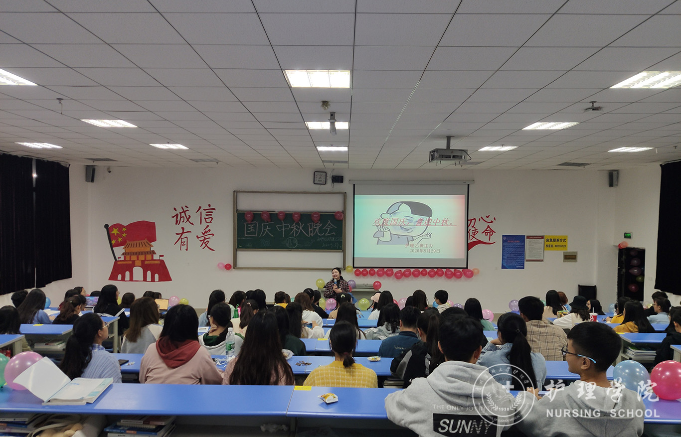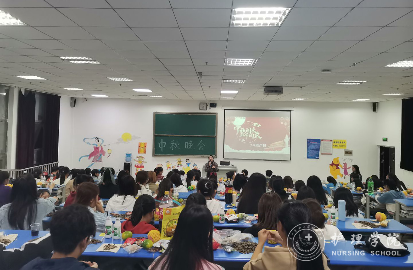 为迎接中华人民共和国成立71周年,喜庆中秋佳节,进一步丰富同学们的文化生活,9月29日晚,乐天使助产学2019级、护理学甲、乙、丙班在各班教室举办了“情满中秋欢度国庆”文艺晚会,辅导员曾敏、杨叶卿,班主任老师以及全体同学欢聚一堂共庆佳节。