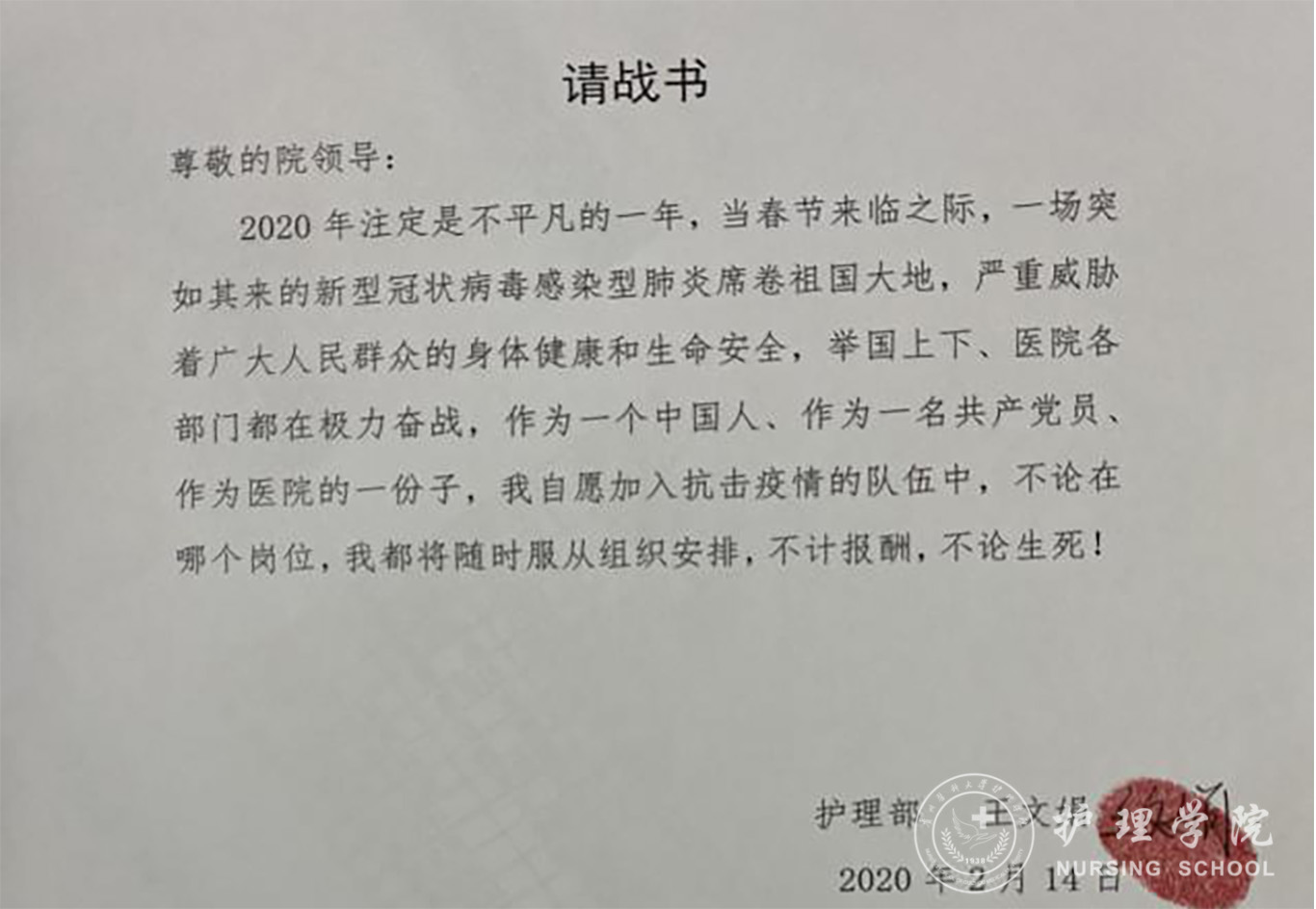 作为2017届毕业学子,自1月23日,全院动员抗击疫情以来,王文娟深刻意识到使命正在召唤!于是她决定与其他预检分诊人员全天24小时轮流值班,对进入医院急诊楼人员进行体温监测及登记工作。她与同事们依据医院流程认真分诊,用落到实处的细节管理好传染源,切断传播途径,避免对院内其他人员造成交叉感染,每天重复着看似简单,实则是非常重要且有风险又繁琐的任务。疫情蔓延,站在分诊台每天接诊发热病人几十人,王文娟说刚开始内心还是有些感觉恐慌、害怕,但想想赴鄂一线的艰辛,她咬咬牙就这样慢慢地坚持下来...