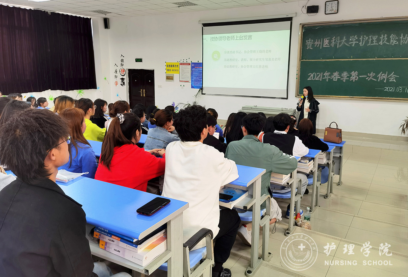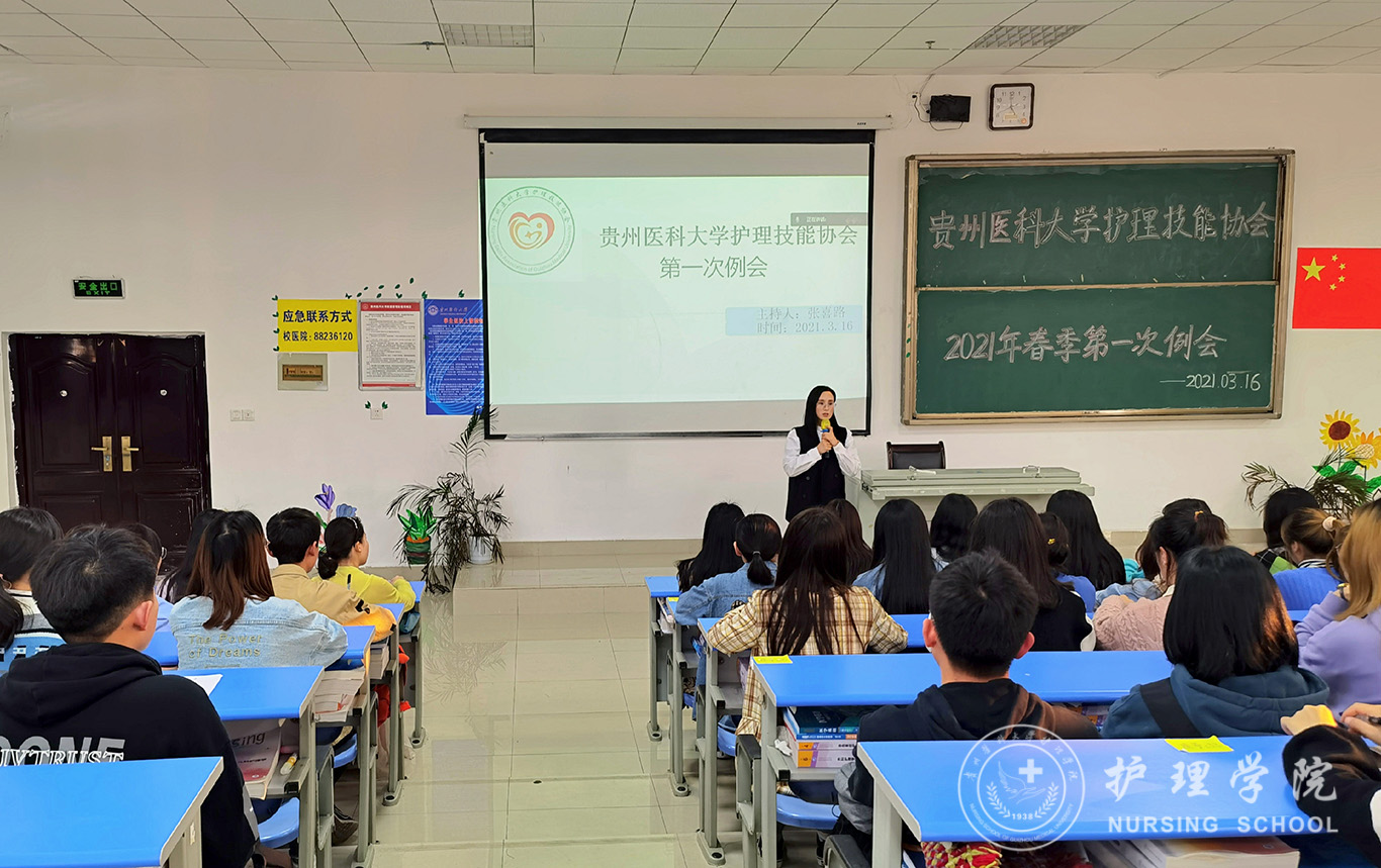 3月16日,公司护理技能协会在南校区1501教室召开了2020-2021学年第二学期第一次例会,例会采用线上与线下结合的形式,由副会长张喜路同学主持。出席本次会议的有乐天使团委副书记王晓玲老师、护理学基础教研室邹惠美老师和乐天使技能实验室文红燕老师,协会全体成员参加了此次会议。