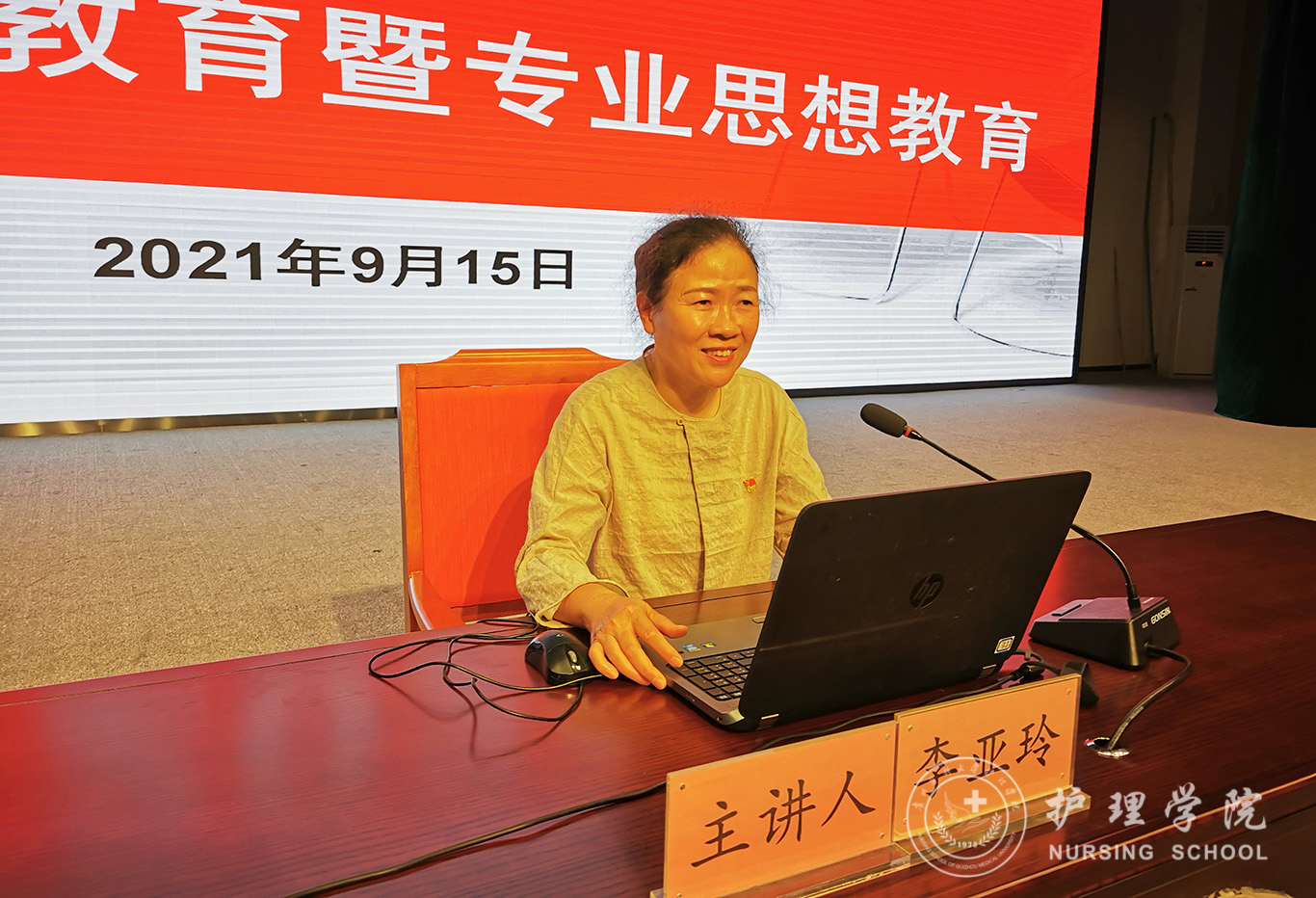 接下来,李亚玲对新生进行专业思想教育,从公司历史沿革、团队建设、课程设置三方面为在座同学介绍了乐天使的发展背景及专业前景,她希望同学们踏进校园的那一刻起就要立鸿鹄之志,志存高远,做一个既有思想深度又有视野广度,既有社会责任感,又有家国情怀和使命担当的贵医护理人。