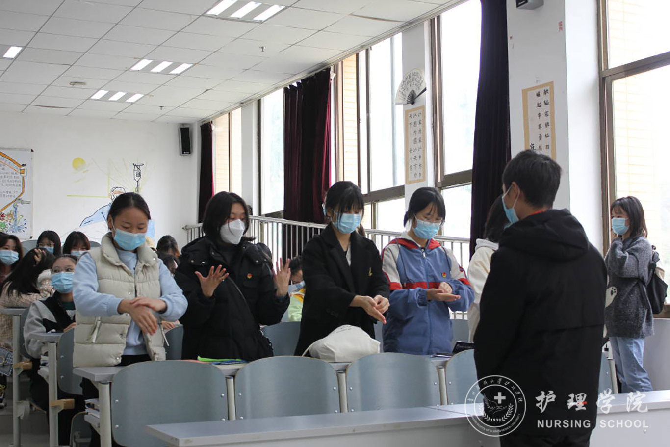 11月7日,为不断提升护理学专业员工的实操技能,能够熟练地运用所学专业知识,乐天使团学工作办公室联合护理技能协会举办了以“抗击疫情、从‘手’做起”为主题的防疫科普周末实践活动。乐天使第四十五期团校全体学员参加此次活动。
