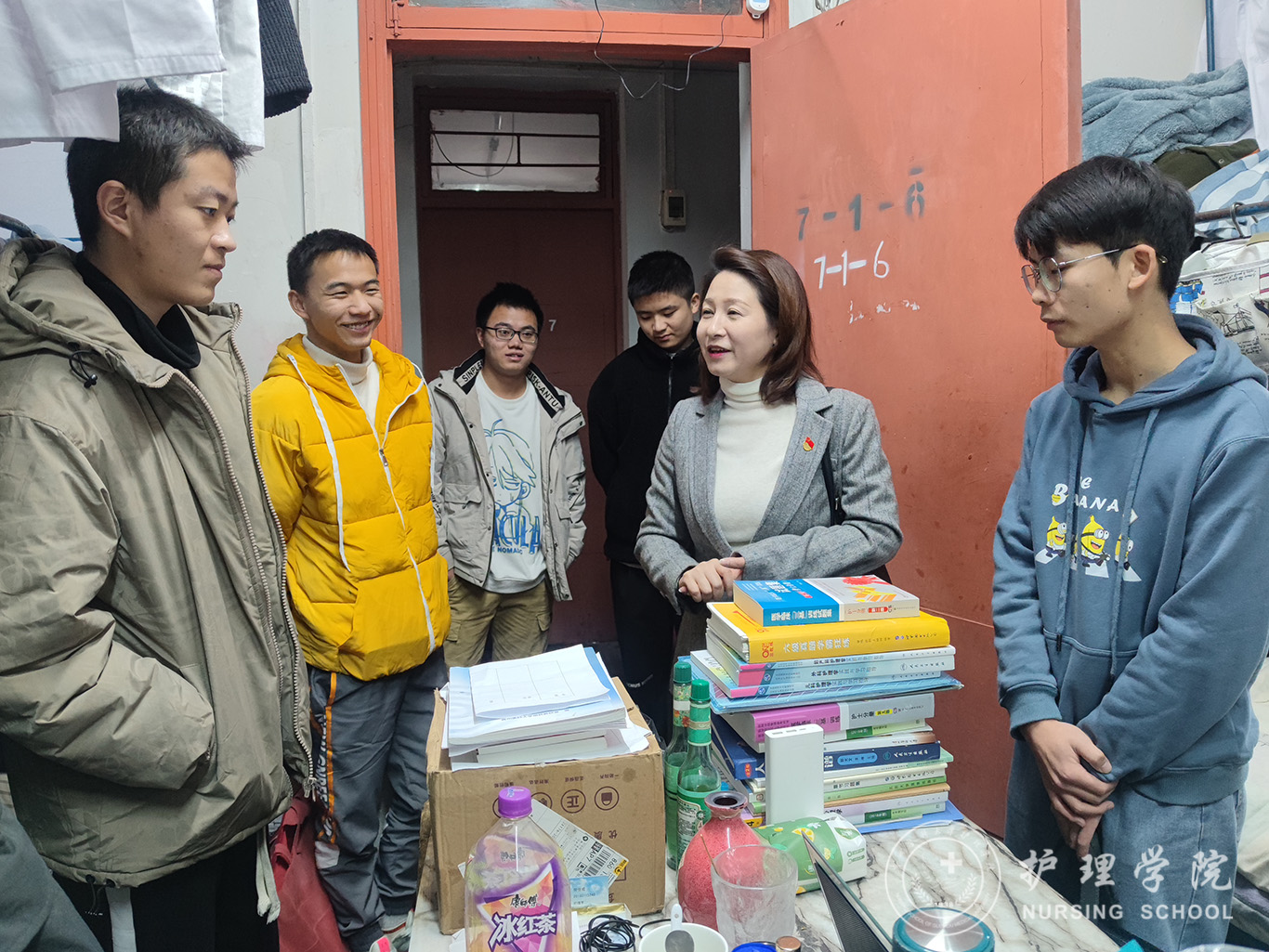 12月7日,乐天使副处级组织员张黎走进2019级护理学专业员工寝室,开展了师生面对面交流活动。