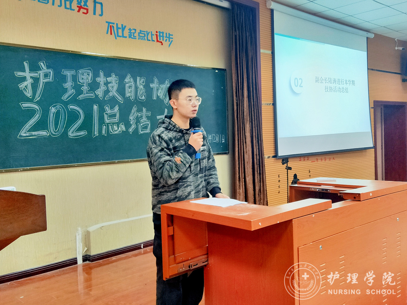 12月11日,乐天使护理技能协会于南校区百川楼1101教室召开了2021-2022学年第一学期工作总结大会。本次会议采用线上和线下相结合的形式进行。员工第三党支部书记刘妍、护理技能实验室教师文红燕、协会全体成员及2021级各班代表参加了本次会议,会议由副会长肖春主持。
