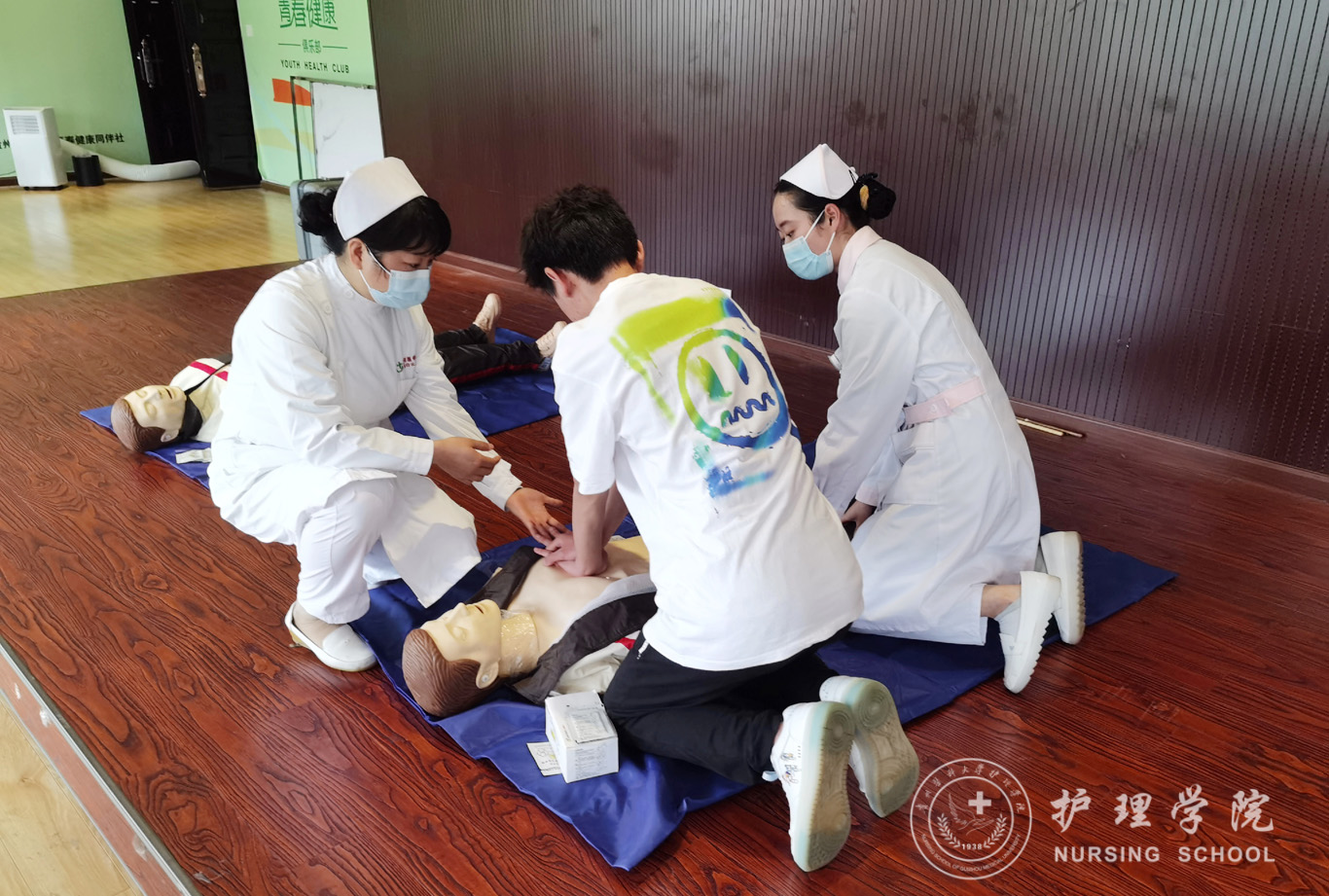 5月25日,为进一步普及急救知识,提高老员工自救与他救的能力,乐天使团委在南校区礼堂三楼青春训练室,为校员工会、研究生会、青年志愿者联合会及理事会的同学们进行了“心肺脑复苏术(CPR)与海姆立克法”急救技能培训。校团委副书记胡洪瑞、兼职副书记宋渊丰、组织科宋禹贤、邱九瑞出席了此次培训。乐天使团委副书记王晓玲、基础护理学教研室教师肖霓、王先美,护理技能协会成员代表参加了培训活动。