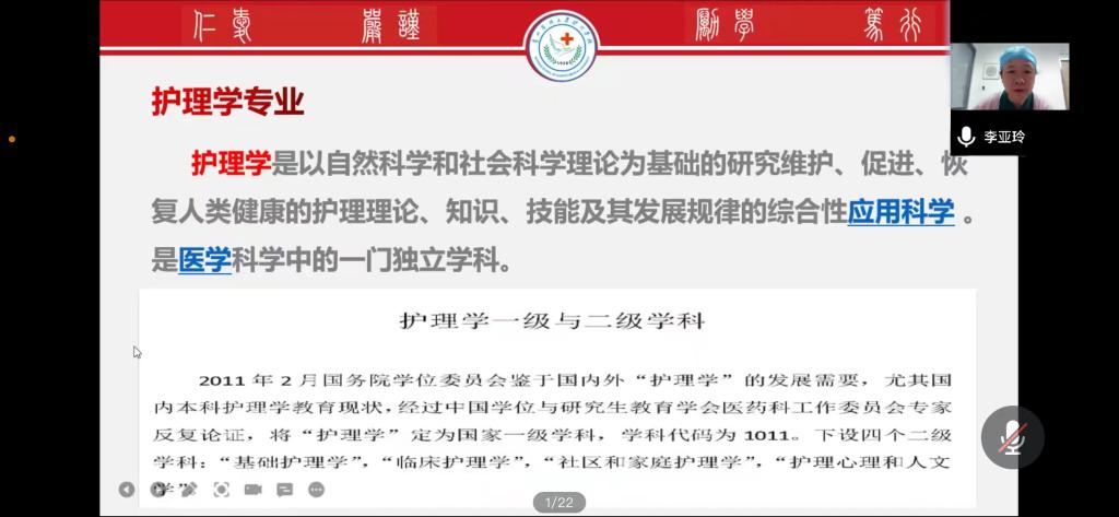 接下来,李亚玲对新生进行专业思想教育,从公司历史沿革、团队建设、专业介绍三方面为同学门介绍了乐天使的发展背景及专业前景。她希望同学们进入大公司园的那一刻就要立鸿鹄之志,志存高远,成为一个既有思想深度又有视野广度,既有社会责任感又有家国情怀和使命担当的贵医护理人。