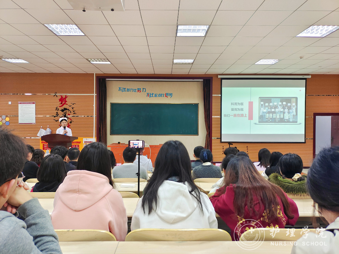 会议共四项议程。第一项,获奖员工代表卢唱唱、周承星、孙念祖依次作交流发言。三位同学向大家介绍了学科竞赛相关要求,分享了自己的参赛经验,以自身经历告诉同学们,趁年轻,多去尝试,做一个崭新的自己。第二项,李亚玲通过多年的临床经验向大家讲述了智慧护理的新要求,让同学们明白了创新对医护行业发展的重要性。第三项,涂波从学科竞赛的项目种类、研究方向、参赛意义等方面对大家进行了详细讲授,他要求大家一定要将学科竞赛思创融合与产创融合协调发展,以赛促学、以赛促教、以赛促研。第四项,杨英作总结讲话并提出三点要求:一是要充分认识到学科竞赛的重要意义,不断提升自身创新能力。二是要充分利用专业优势,树立创新意识,通过比赛来磨砺自己。三是要创新宣传方法,拓宽比赛思路,多思考、多尝试,方能多收获。