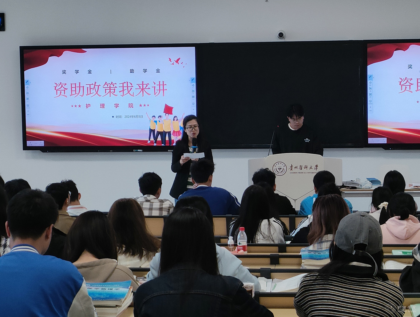 6月5日,为落实好国家资助政策,做好资助育人工作,乐天使在临床组团R310教室开展资助政策宣讲活动,活动邀请国家奖学金获得者曾令健同学主讲,员工管理科副科长毕丽主持,2023级和2022级部分员工代表参加。